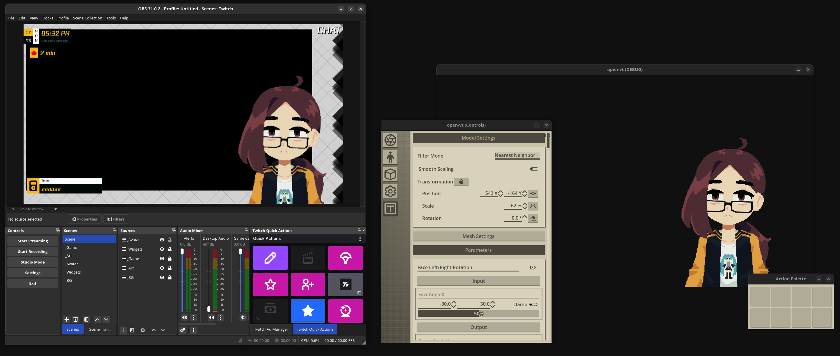 The majority of the vtuber ecosystem is built in Unity, largely due to familiarity of the software for 3D applications and the direct support for Live2D being provided by Cubism. By contrast, OpenVT is built in Godot. It leverages much of the same open-source software for facial tracking, and native libraries for controlling models.